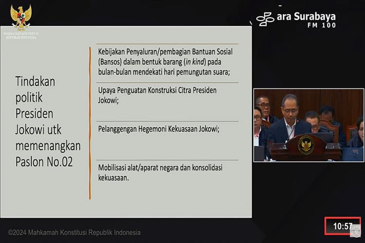 TIMES Pontianak/Ketua KPU RI Hasyim Asy'ari dalam sidang lanjutan PHPU di Mahkamah Konstitusi, Jakarta. (FOTO: Tangkapan Layar)